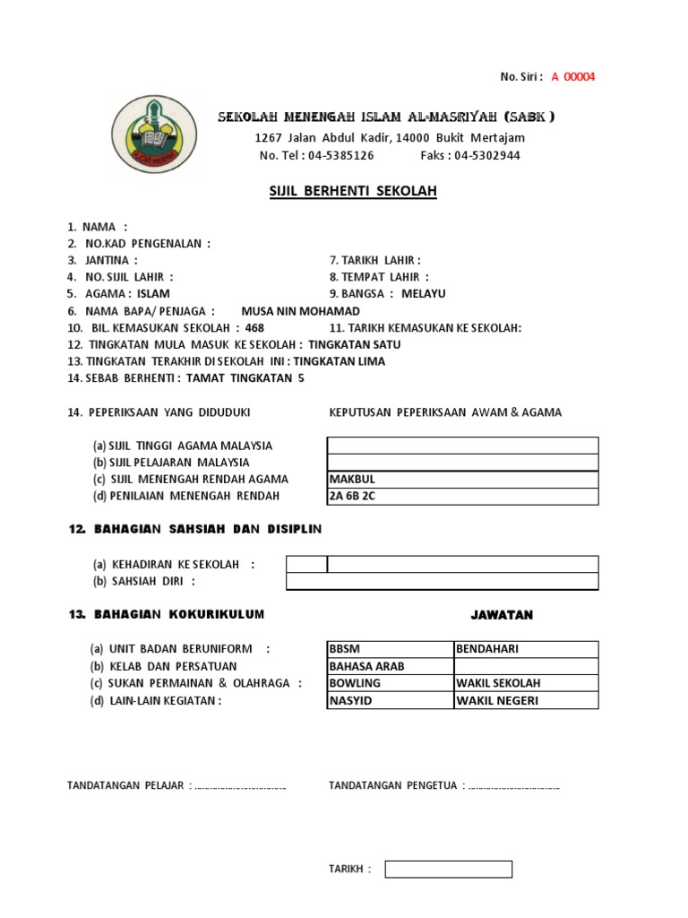 Surat Berhenti Sekolah Hilang Letter 7saudara Com